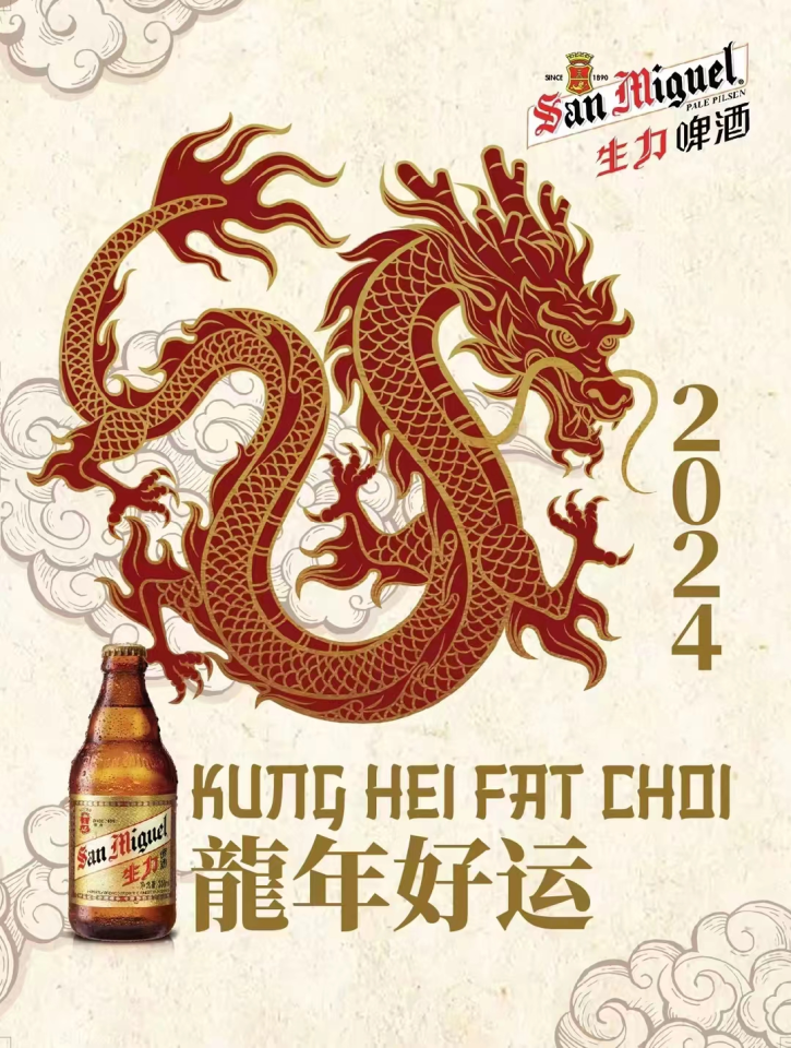In January 2024, San Miguel Guandong Brewery Co. Ltd. (SMGB) launched its Chinese New Year (CNY)-themed campaign supported by a merchandising drive in 995 outlets and lucky draw promotions in 36 outlets under the festive theme “Share San Miguel, Share the Red Luck!”. The festive outlet merchandising, adorned with elements of Chinese New Year celebrations, has been well-received by outlet owners. By the end of February, over 1,000 outlets successfully completed the merchandising activity, featuring 100 product stacking displays. Simultaneously, a consumer lucky draw promotion was conducted in 80 outlets, with three lucky winners from Taishan, Dongguan, and Shenzhen each receiving a prized 24K gold “Dragon” medal valued at 3,100 yuan.